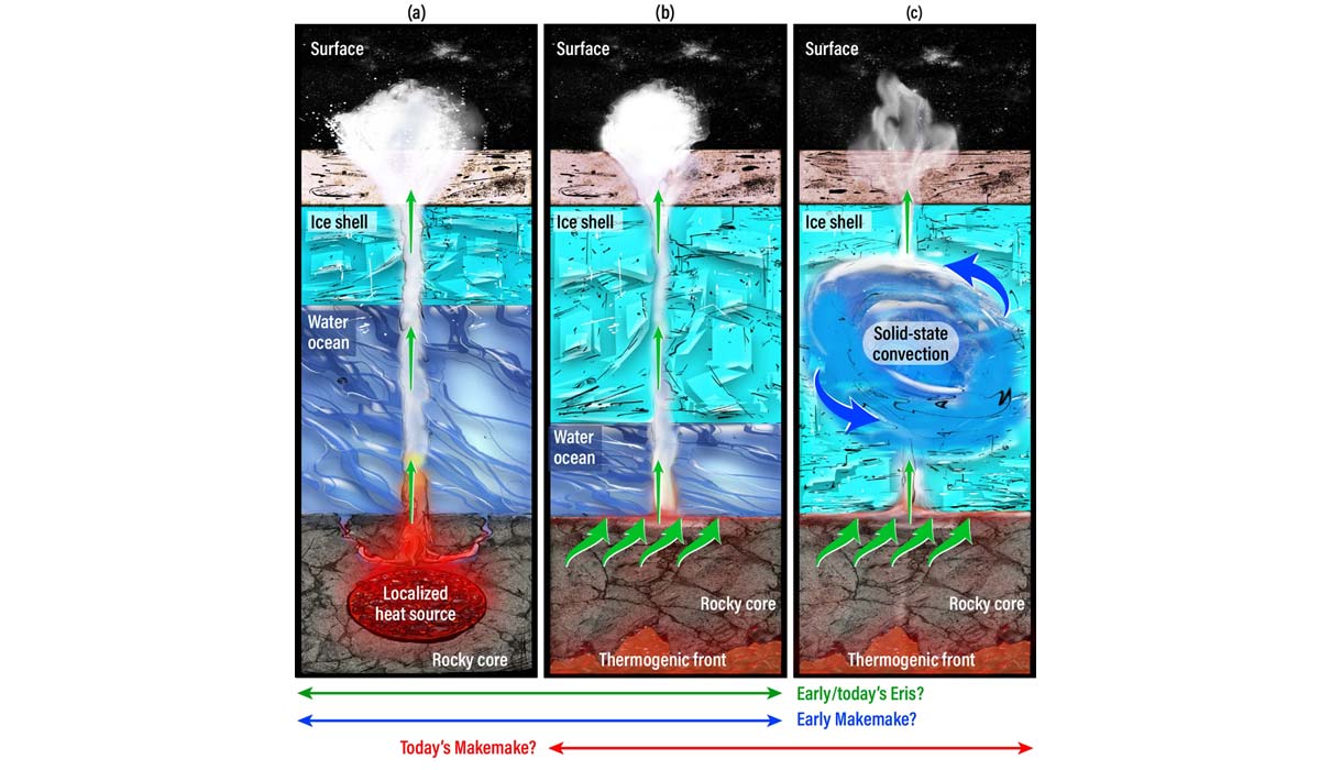Команда ученых, возглавляемая Юго-западным исследовательским институтом, обнаружила признаки гидротермальных или метаморфических процессов на ледяных карликовых планетах Эрида и Макемаке, расположенных в поясе Койпера.