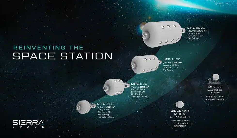 Благодаря предстоящему испытанию компания Sierra Space проведет семь ключевых стресс-тестов всего за два года: пять из них — на малогабаритных изделиях и два испытания на разрыв на полномасштабных устройствах LIFE 285. Ранее в этом году компания Sierra Space представила LIFE 500, объем которого составляет 500 кубических метров за один запуск внутри пятиметрового ракетного обтекателя. Началось проектирование и планирование испытаний следующего расширяемого изделия с запланированным испытанием на разрыв в 1 квартале 2025 года. С появлением LIFE 500 линейка расширяемых изделий Sierra Space теперь состоит из модулей LIFE 10, LIFE 285 и LIFE 500, а более крупные модули LIFE 1400 и LIFE 5000 планируются к установке в семи- и девятиметровые обтекатели более крупных ракет-носителей, находящихся в разработке.